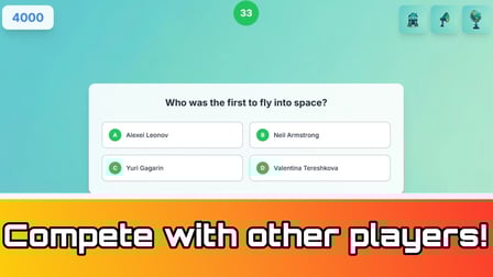 Oynamak için, ekranınızdaki soruya odaklanın. Sorunun altında verilen cevap seçeneklerinden birini seçmek için ekranınıza dokunun. Doğru yanıtı bulursanız puan kazanırsınız! Uygulama iki modda çalışıyor: tek oyunculu ve çok oyunculu. Tek oyunculu modda, kendi başınıza ilerlerken çok oyunculu modda diğer oyuncularla rekabet edebilirsiniz. Oyun, puan toplamak için hızlı ve doğru yanıtlar vermenizi gerektiriyor.