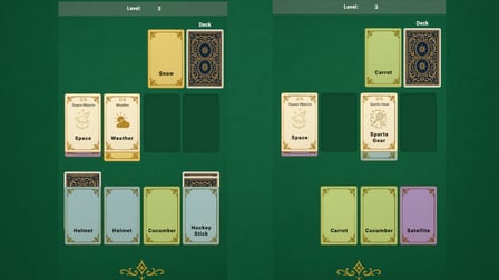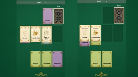 Solitaire: Card Sorting oyununda oyuncular, çiçeklerden aletlere kadar farklı kategorileri temsil eden güzel tasvirlerle dolu canlı bir dünyada kendilerini bulurlar. Oynanış, sınırlı hamlelerle her seviyenin çözülmesi etrafında döner; bu da keskin gözlem ve taktiksel karar verme gerektirir. Her sıralanan yığınla oyuncular sadece seviyelerde ilerlemekle kalmaz, aynı zamanda bir başarı hissi de yaşarlar.