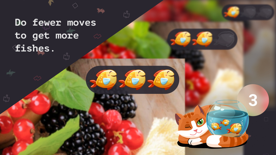 - Daha fazla balık kazanmak için resmi mümkün olduğunca az hamlede tamamlamayı hedefleyin.